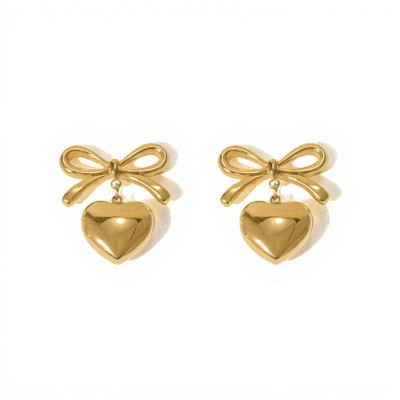 Alilang Women's Bow Stud Earrings with Metallic Heart Dangle Charm and Polished Modern Cute Design