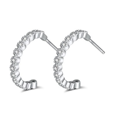Half Hoop Earrings for Women Sterling Silver Clear Cz Ginger Lyne Collection