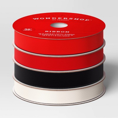 4pk Christmas Satin Ribbon Gift Packaging Accessories Red/Black/White - Wondershop™