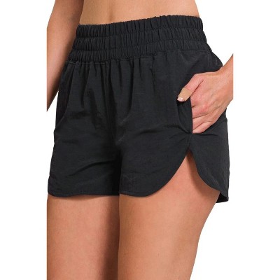 Zenana Windbreaker Smocked Waistband Running Shorts