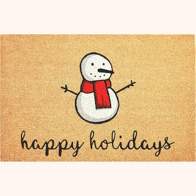 HomeRoots 17" X 29" Natural And White Coir Snowman Outdoor Christmas Door Mat