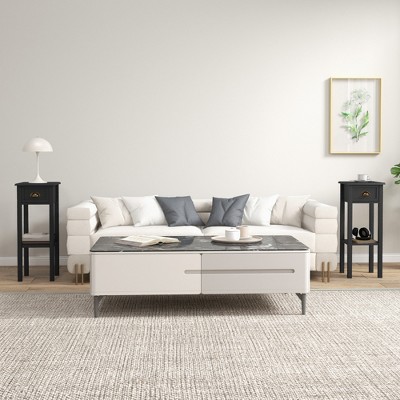 CIPACHO 2-Tier Side Tables Set of 2 with Drawer and Shelf, 2 Pieces End Tables for Living Room and Hallway, Black