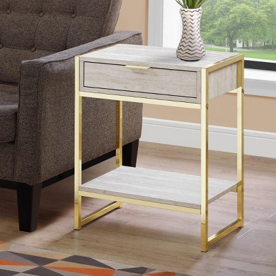 Striking End Table, Side Table, or Small Night Stand for Room Decor - Two-Tone Metal Accent Table with Marble Top for Small Spaces