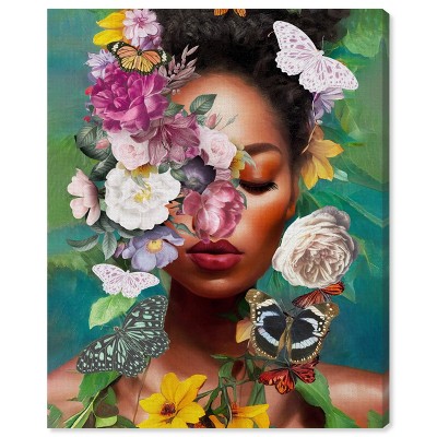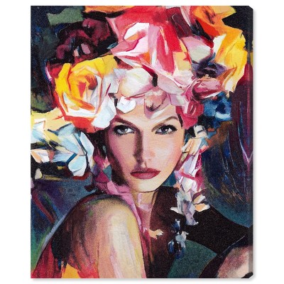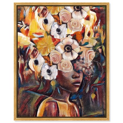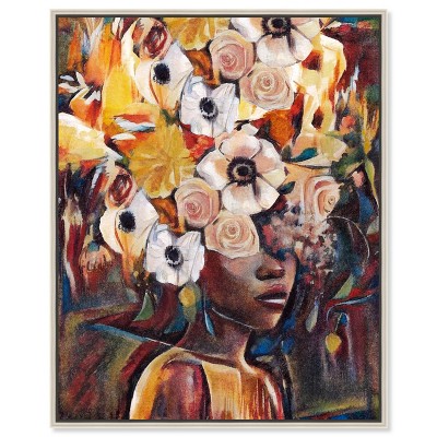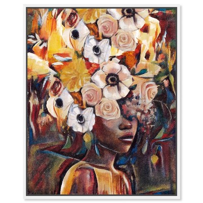 18" x 24" Sylvie Springtime Fierceness Framed Canvas by Kendra Dandy: Abstract Portrait, Modern Wall Art for Bedroom & Office