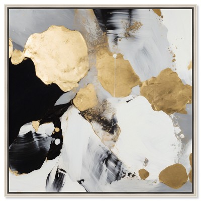 Art Remedy Golden Liquid Black And White Abstract Unframed