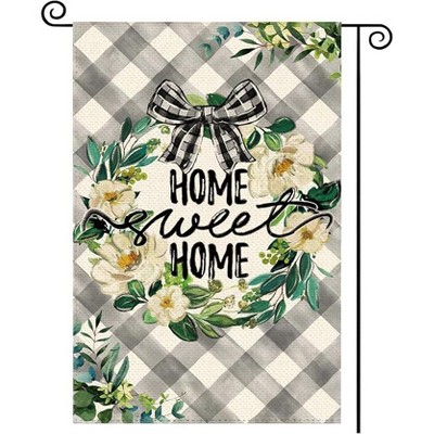 Lomsoe Sweet Home Floral Garden Flag, Farmhouse Buffalo Plaid Welcome Yard Flag for Spring Summer Outdoor Porch Decor, 12 x 18 Inch