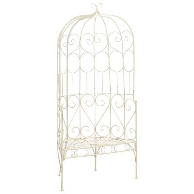 vidaXL Wrought Iron Outdoor Patio Bench, 37.4" in Antique White | Aesthetic Design | Comfortable Wide Seat | Durable Material | Easy Assembly