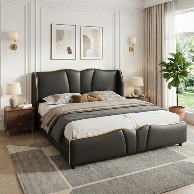 - gray solid wood platform bed