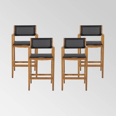 Fairfax 4pk Acacia Wood Bar Stools - Teak/Black - Christopher Knight Home: Weather-Resistant, Fixed Height