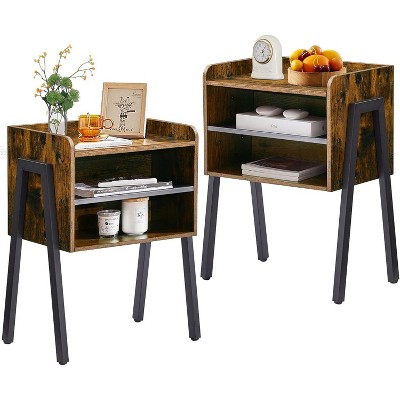 VECELO 1/2PCS Stackable Nightstand Industrial Side End Table Accent Furniture with 2-Tier Open Storage Shelf Retro Brown/Gray