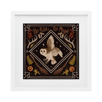 Stupell Industries No Risks or Magic Owl Framed Print Under Glass Art, White, 13" x 13"