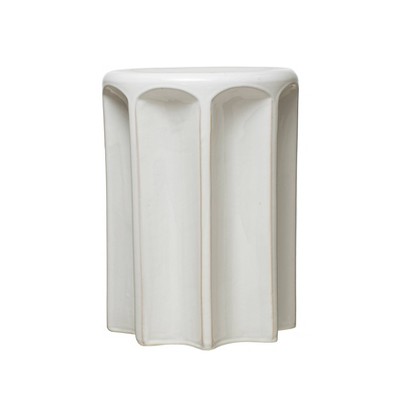 Storied Home Stoneware Sculpted Accent Table White: Round, No Assembly Required, 18.12" Height
