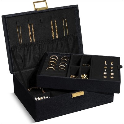 2-Layer Emerald Velvet Jewelry Box with Decorative Lock, Large Organizer with Removable Tray for Bracelets, Necklaces, Rings
