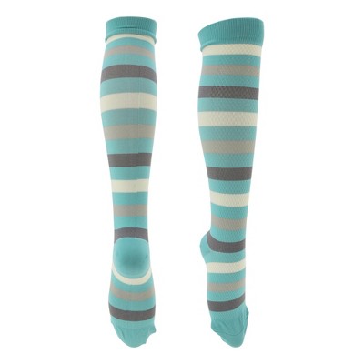 Unique Bargains Cycling Athletic Socks Anti Friction Outdoor Black Light Purple Four Color Stripes 1 Pair