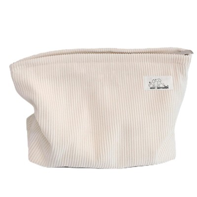 Narwey Creamy Light Khaki Corduroy Makeup Bag Cosmetic Toiletry Travel Pouch, Make Up Accessory Purse Organizer, Canvas Lined