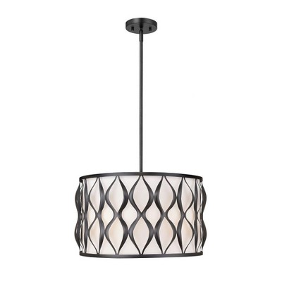 Harden 5-Light Pendant Light - Matte Black Steel, Dimmable, Damp Rated, 18.25" Drum Design
