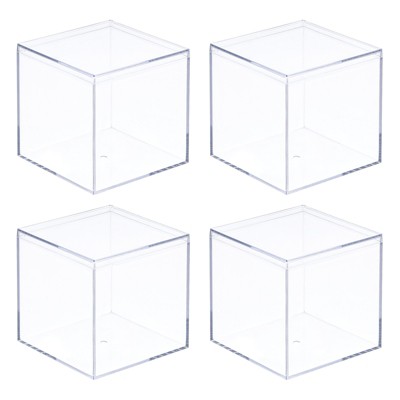Unique Bargains Acrylic Square Storage Display Case with Lid for Small Items 4 Pcs