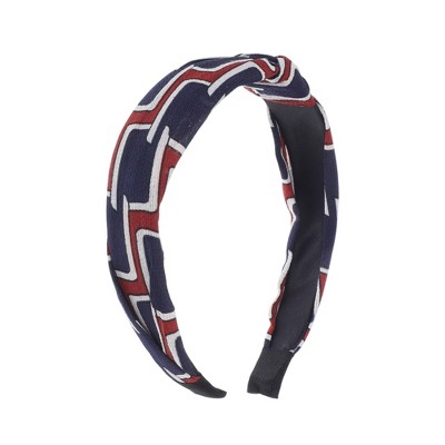 Unique Bargains Grace Block Pattern Wide Cross Knot Headbands Navy Blue 1 Pc