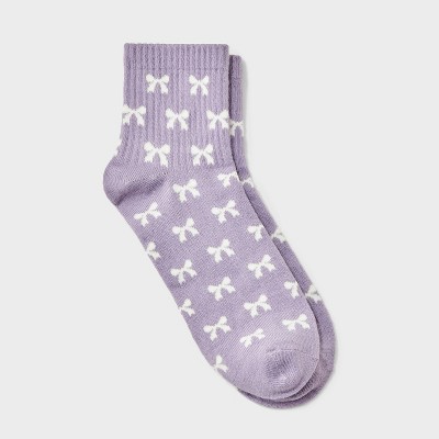 Women's Fashion Ribbed Ankle Single Embroidered Socks - Lavender