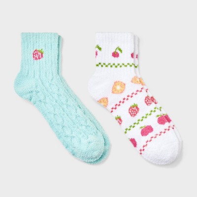 Women's Fairisle Fruit 2pk Cozy Quarter Crew Socks - White/Blue Combo 4-10