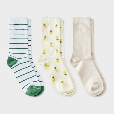 Women's Pineapple Crew Socks - A New Day™ Sour Cream