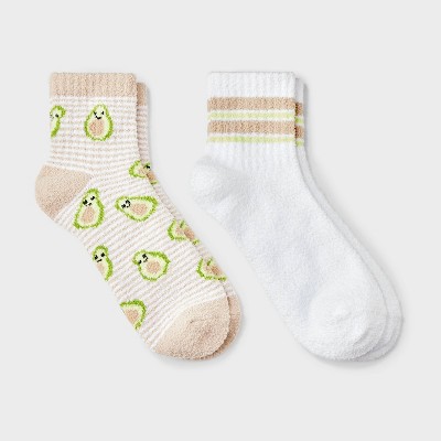 Women's Avocado 2pk Cozy Quarter Crew Socks - Grey/Cream Combo 4-10