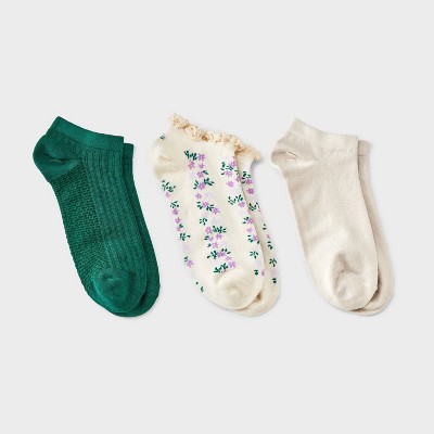 Women's 3pk Lace Trim Low Cut Socks - Auden™ - Rainforest