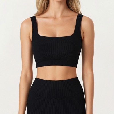 Anna-Kaci Active Women's Square Neck Ribbed Crop Tank Top with Wide Straps