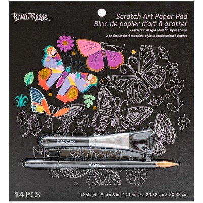 Brea Reese: Scratch Art Paper Pad - Butterfly, 12 Sheets, 6 Designs, Adult Craft