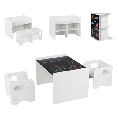 27.5 in Convertible Activity Table to Storage Shelves, Craft Play Desk with 2 Storage Box, Folding Art Table and 1 Chair Set, for School Home