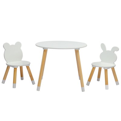 VECELO 3-Piece Kids Table and Chairs Set, Wooden Children Activity Furniture for Playroom or Classroom, White