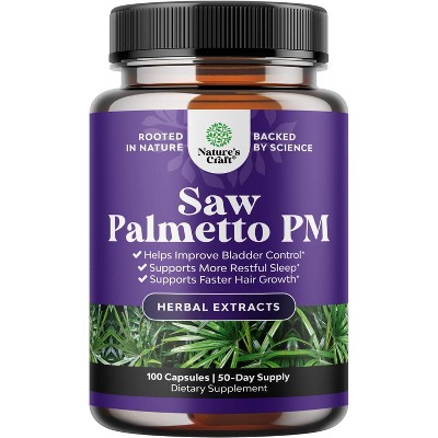 Saw Palmetto PM Capsules, Reduce Night Urination Frequency and Overactive Bladder with Lycopene Pumpkin Seed and Melatonin, Nature's Craft, 100ct