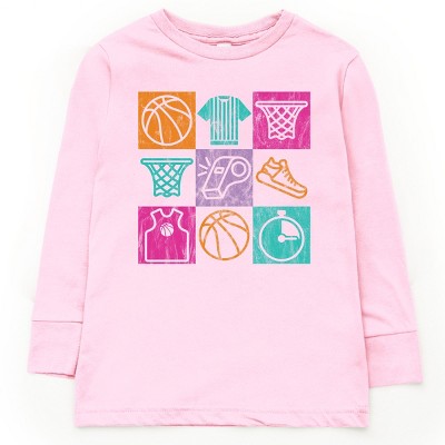 Basketball Checkered Icons - Youth Long Sleeve Graphic T-Shirt