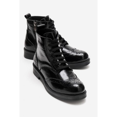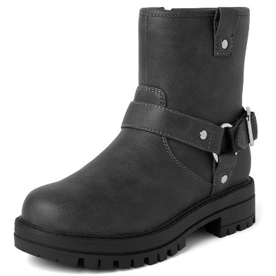 BLISSFUL STEP Women's Round Toe Lace Up Chunky Heel Combat Boots