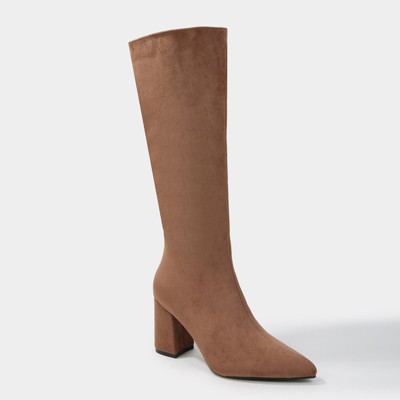 Allegra K Women's Winter Pointed Toe Chunky Heel Knee High Dress Boots