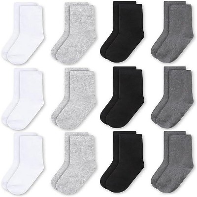 Black/Gray/White 12 pack socks for Girls or Boys, Little Kids Ages 6-10 Years