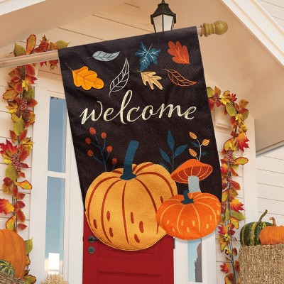 Briarwood Lane Fall Burlap House Flag 40x28 For Outdoor Pumpkins and Mushrooms For Fall House Flag