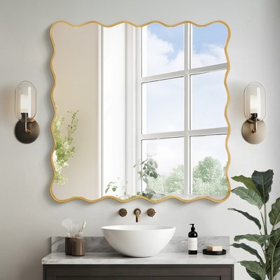 Solid Wood Wavy Mirror-Black Mirror Wall Decor 31inx 31inModern Mirror Wall Decor for Bathroom, Bedroom, Living Room, Dining Room, Cloakroom, Entryway