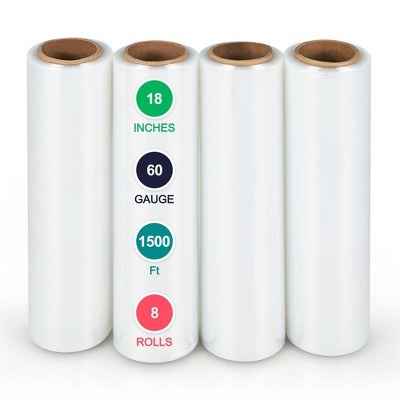 Costway 4/8/12/16 Rolls Stretch Film Heavy Duty Shrink Wrap 60 Gauge Clear Plastic Wrap Film