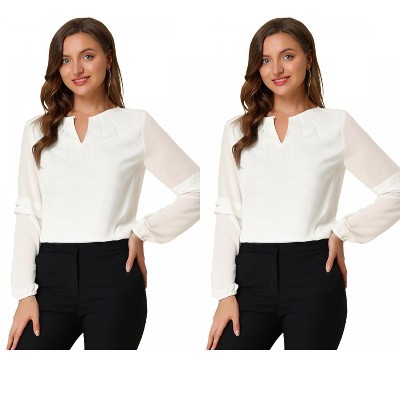 Allegra K Women's Chiffon Semi Sheer Keyhole Neck Elegant Work Blouse 2 Packs