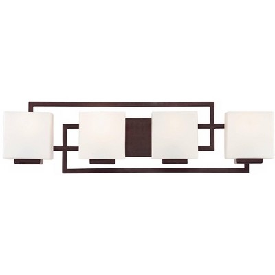 Possini Euro Design Lighting on the Square Modern Wall Light Bronze Hardwire 29" 4-Light Fixture Opal Glass for Bedroom Bathroom Vanity Reading House