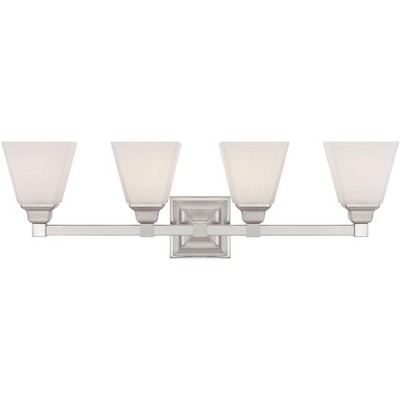 Regency Hill Mencino Modern Wall Light Satin Nickel Hardwire 28" 4-Light Fixture Etched Opal Glass for Bedroom Bathroom Vanity Reading Living Room