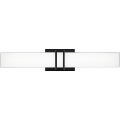 Possini Euro Design Exeter Modern Wall Light Black Hardwire 24" Light Bar LED Fixture White Glass Shade for Bedroom Bathroom Vanity Living Room House