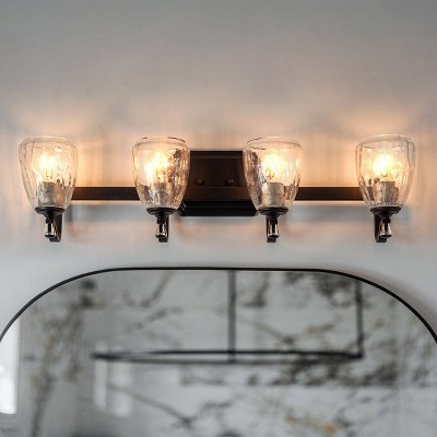 LNC Erharting 4.7-in Polished Gold and Black Bathroom Vanity Light with Ripple Glass Jar, Modern, 1-Light, 2-Light, 3-Light, 4-Light