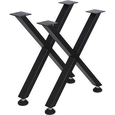 Coucheta Set of 2 x-Shaped Carbon Steel Table Legs, Industrial Style for Coffee Table / Bench, Adjustable Feet & Protector, High Strength & Stability