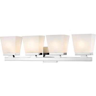 Sunset Lighting Valare Vanity 4-Light, 100W Bright Satin Nickel Opal Glass