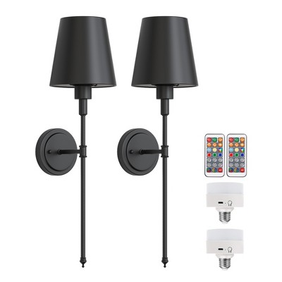 DORESshop 7 in. 1-Light Modern Black Bell Indoor Wall Sconce Adjustable RGBCW LED Wall Lamp for Bedroom Hallway, 2-Pack