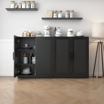 62.4" Sideboard Buffet Cabinet, Large Coffee Cabinet with 4 Doors & 4 Drawers, Modern Storage Cabinet with Adjustable Shelves,Wood Coffee Bar Station
