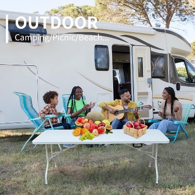 FONTOI Folding Table 4 Foot Portable Heavy Duty Plastic Fold-in-Half Utility Table Small Indoor Outdoor Adjustable Height, White, 99.5"*76"*8.5"