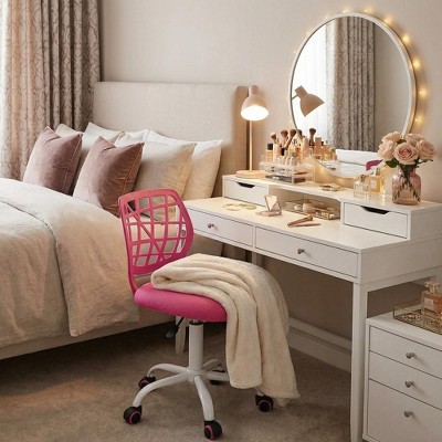 FurnitureR Desk Chair Mesh Armless, Ergonomic Adjustable Mid-Back Compact Rolling Swivel Computer Task Chair for Home Office Study Work, Pink